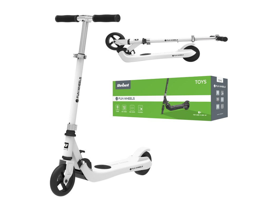 Sanja li vaše dijete o električnom skuteru, ali vi niste uvjereni u tu ideju Idealna opcija za početak je model Rebel Fun Wheels, koji mogu koristiti djeca od 6 godina. Maksimalna brzina vozila je 12 km/h. To je dovoljno da se dijete zabavi tijekom vožnje, a istovremeno osigura sigurnost. Vrijedi napomenuti da je maksimalno opterećenje skutera Fun Wheels 50 kg, tako da će izdržati dugo - čak i za stariju djecu.