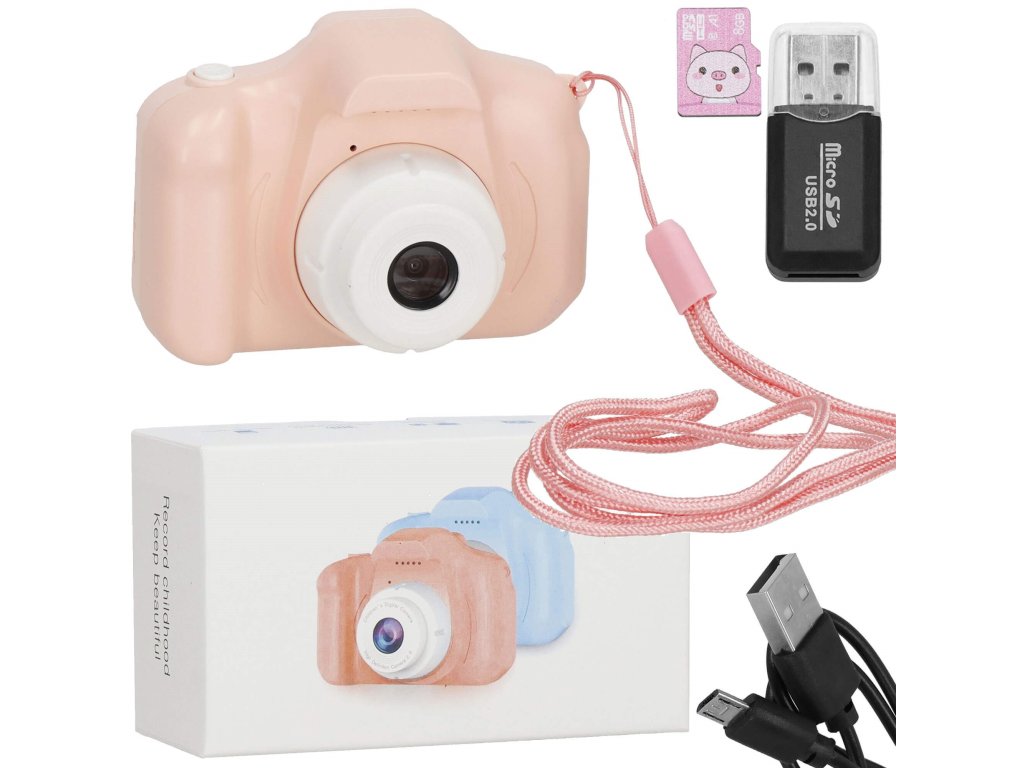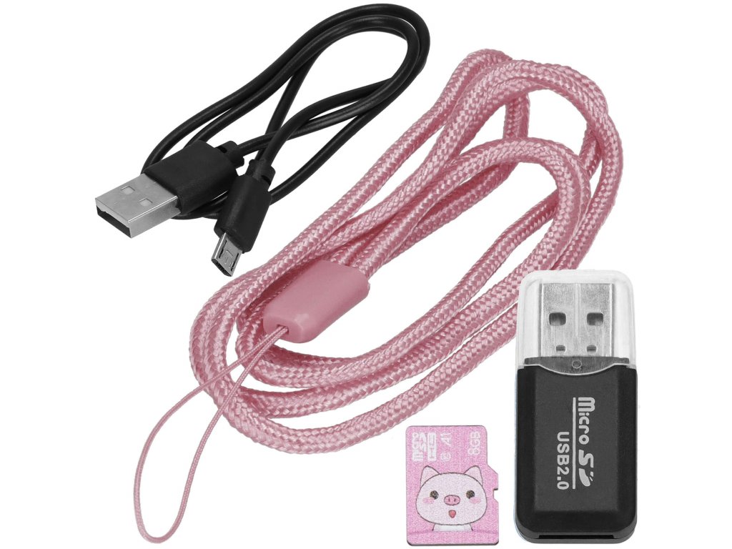 - Set sadrži: fotoaparat / USB punjač kabel / mini SD karticu s čitačem / vezicu
