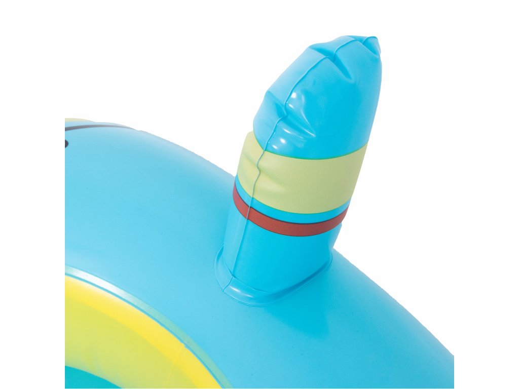 S dimenzijama 80 x 53 x 25,5 cm, čamac pruža udobno i stabilno sjedenje za malu djecu. Mekana, napuhavajuća konstrukcija obuhvaća tijelo i štiti od udaraca. Idealan za igru u plitkoj vodi ili na mirnoj površini bazena, podržava razvoj djeteta kroz kretanje i slobodnu aktivnost.