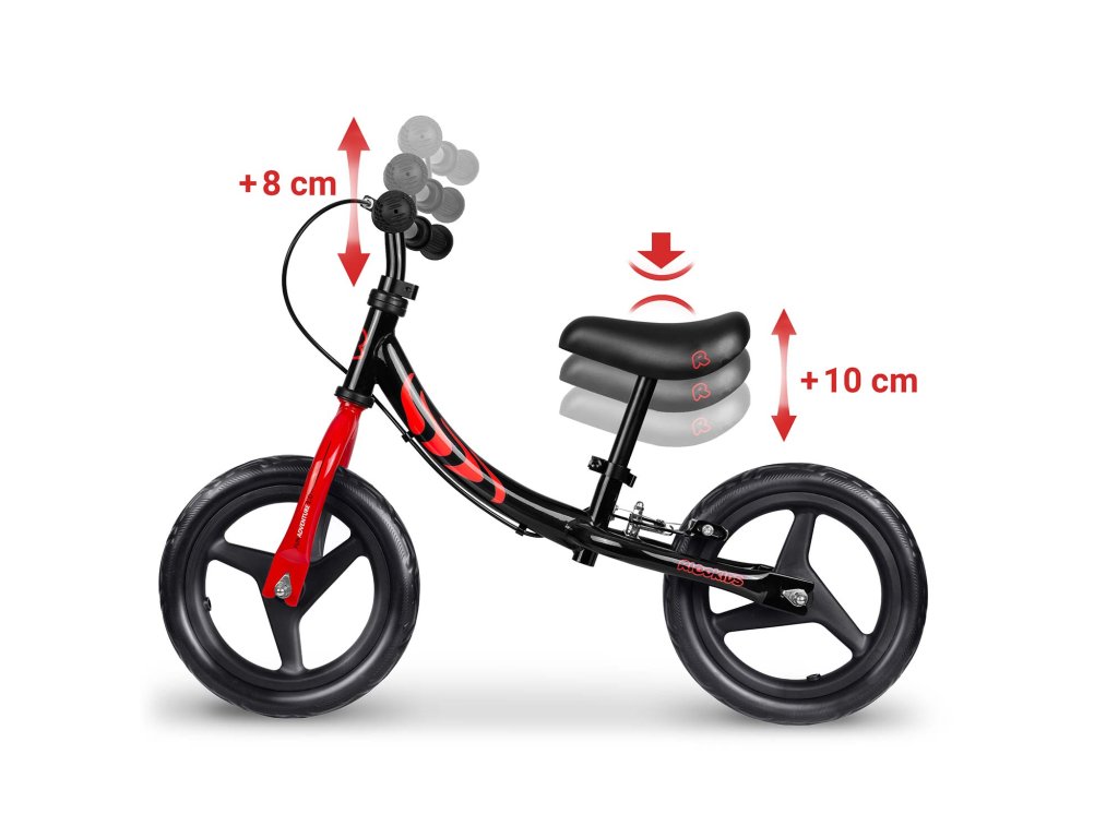 - Duže vrijeme korištenja: mogućnost podešavanja visine sjedala do 10 cm omogućuje prilagođavanje bicikla promjenjivoj visini djeteta, čime se bicikl može koristiti dulje.
