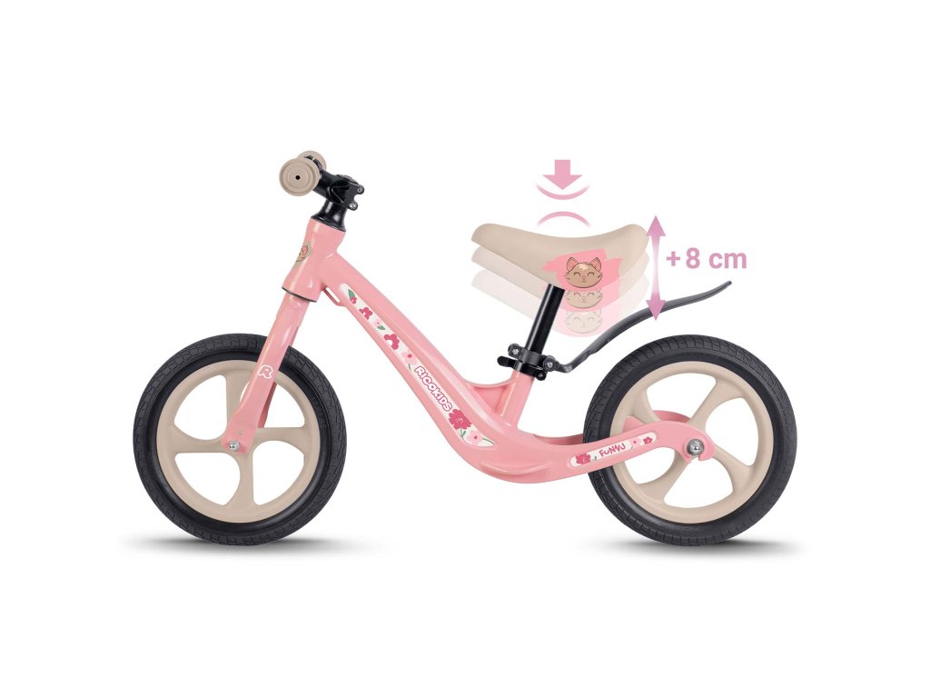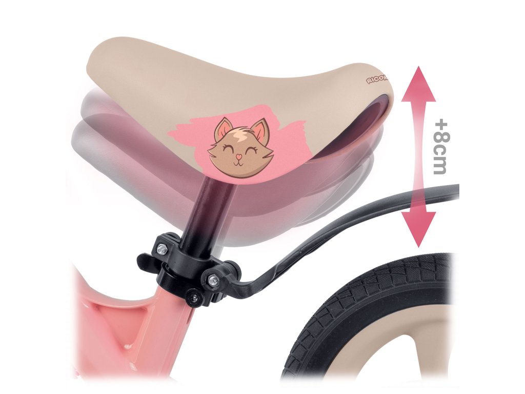 - Dulje vrijeme korištenja: mogućnost podešavanja visine sjedala do 8 cm omogućava prilagodbu balans bicikla rastućem djetetu, čime se produžuje vrijeme uporabe.