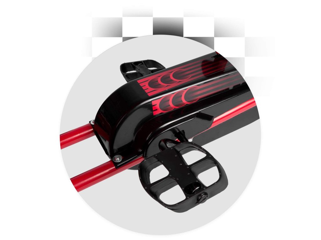 nakon povlačenja poluge karta ima mogućnost slobodnog hoda - zahvaljujući tome moguće je blokirati okretanje pedala (korisno tijekom vožnje niz brdo).