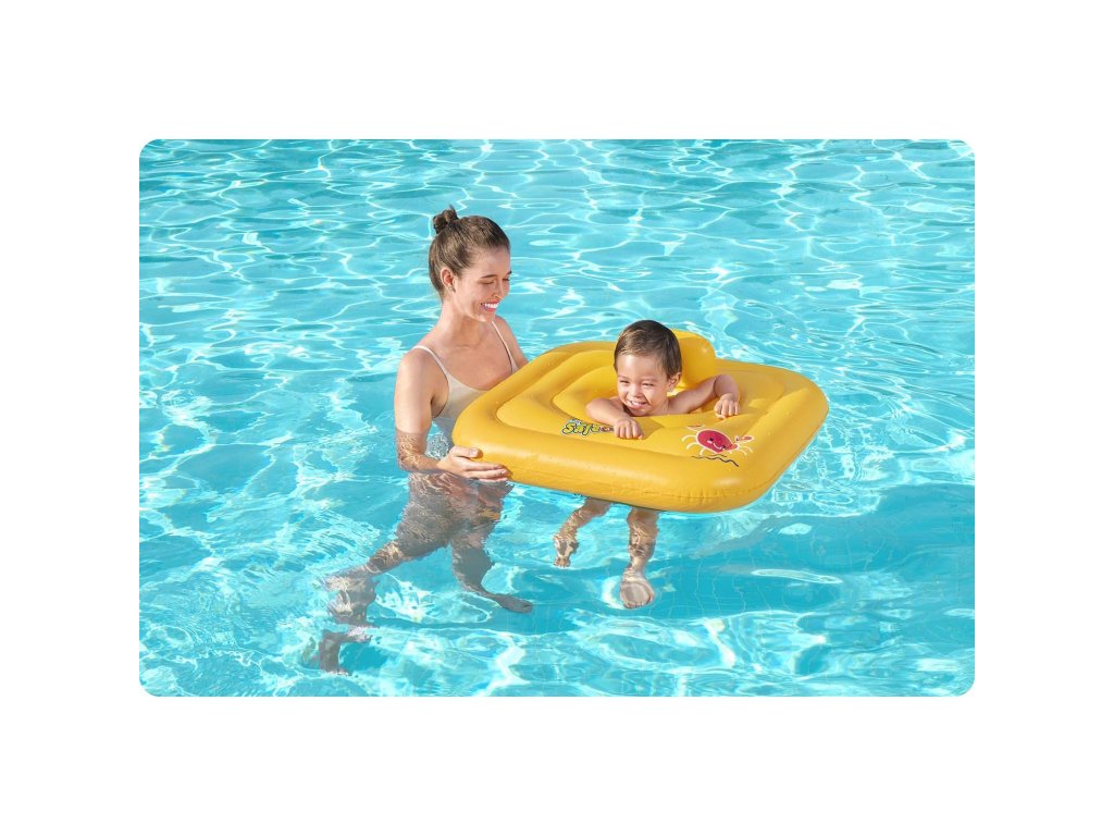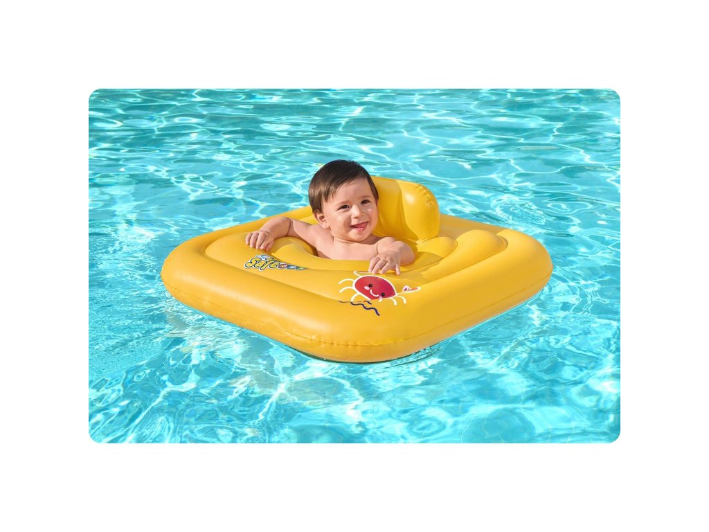 Osim napuhavajućeg naslona ima praktično sjedište, u koje se mogu umetnuti dječje nožice kako bi se spriječilo klizanje u vodu (izvedba podsjeća na pelenu). Proizvod je idealan za najmlađe.
