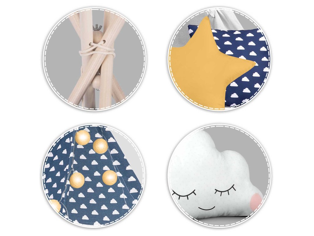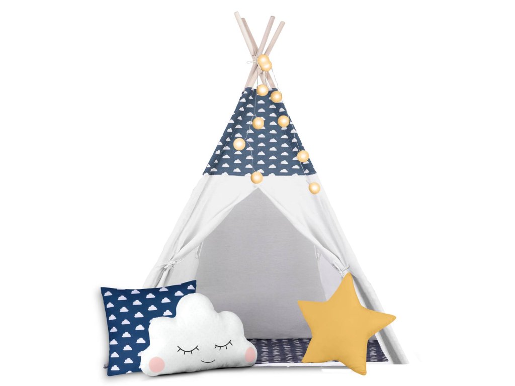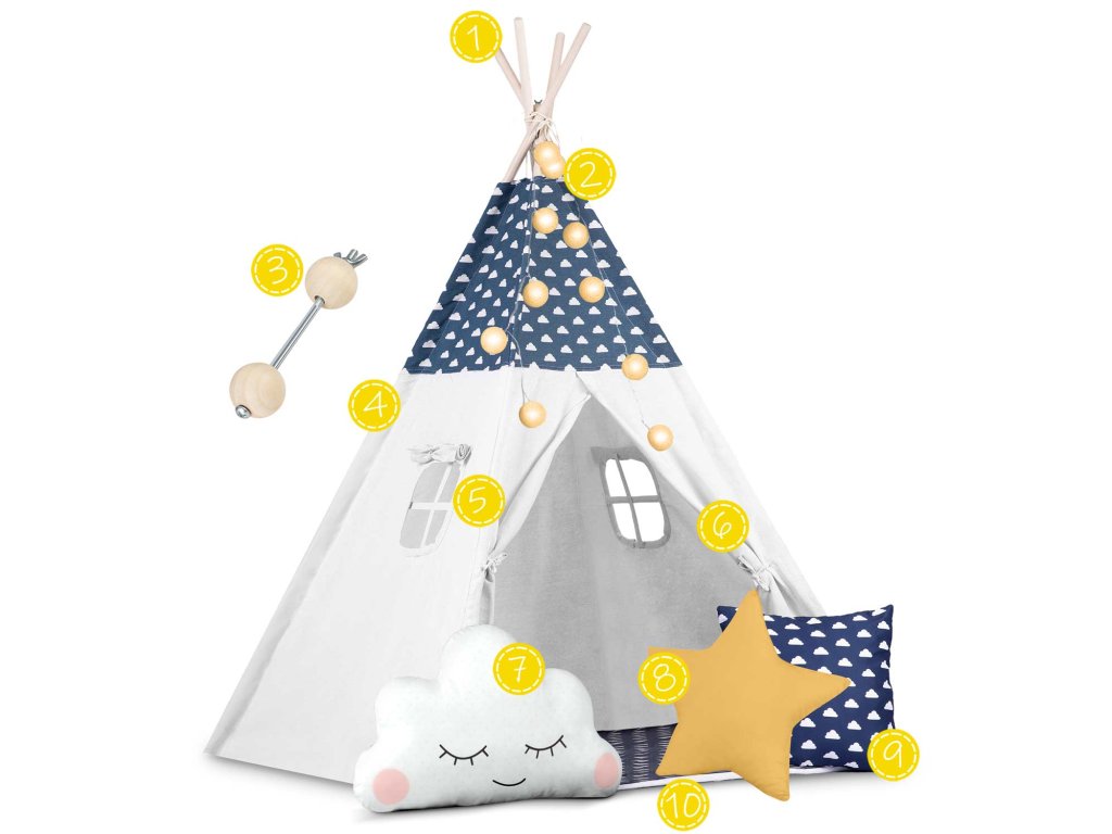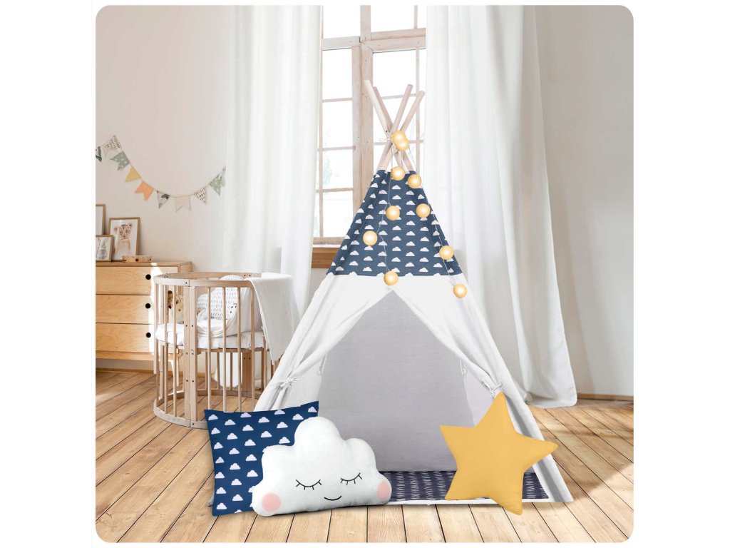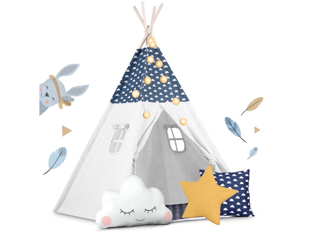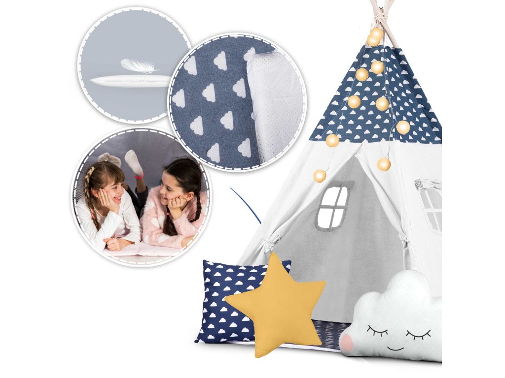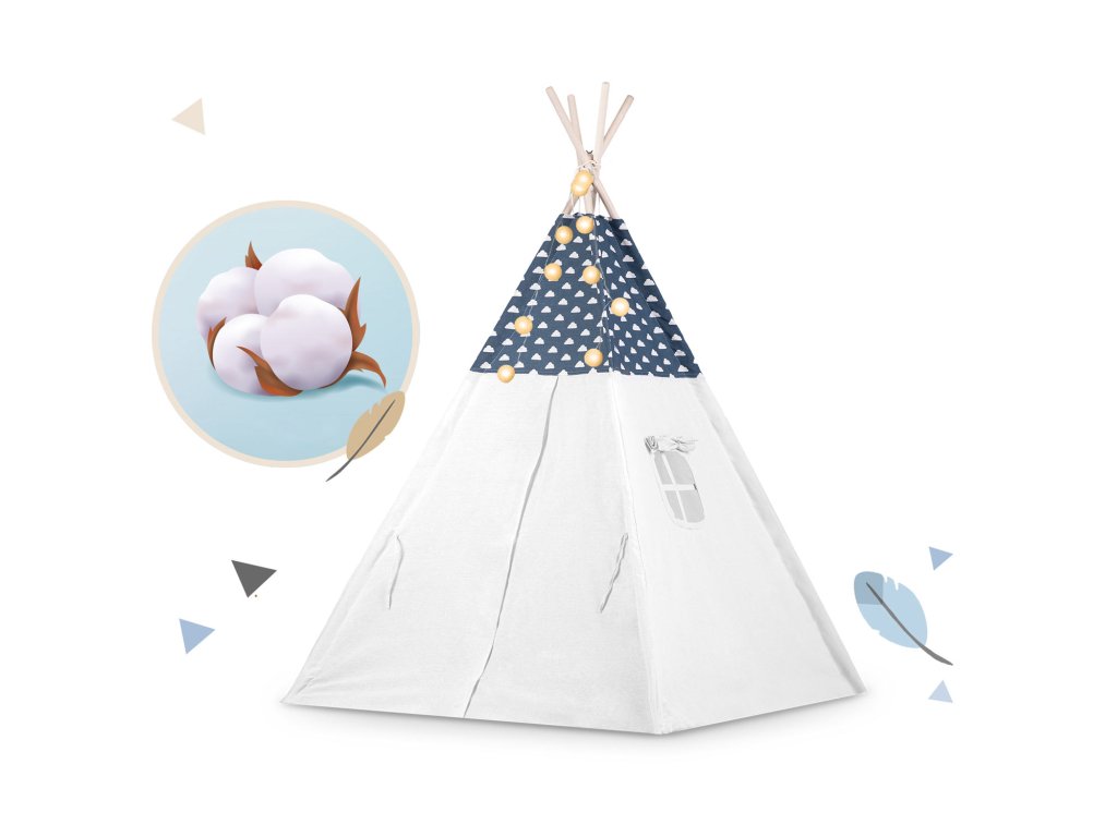 Dječji šator s tipijem i svjetlima Nukido - tamnoplavi