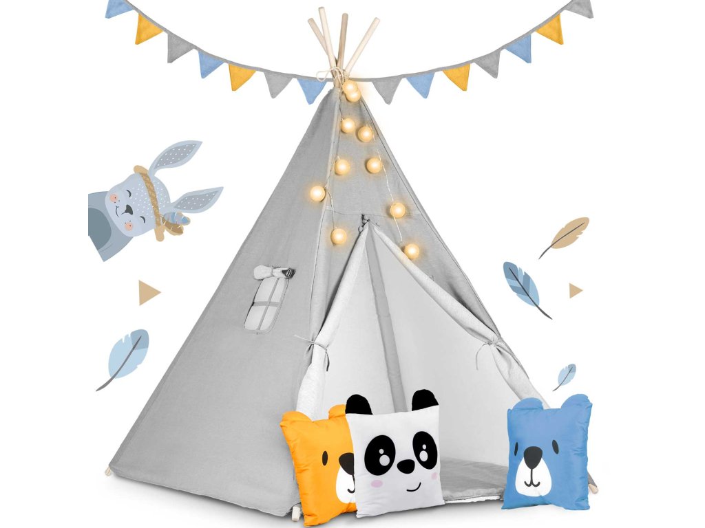 Dječji šator tipi s lampicama Nukido - sivi