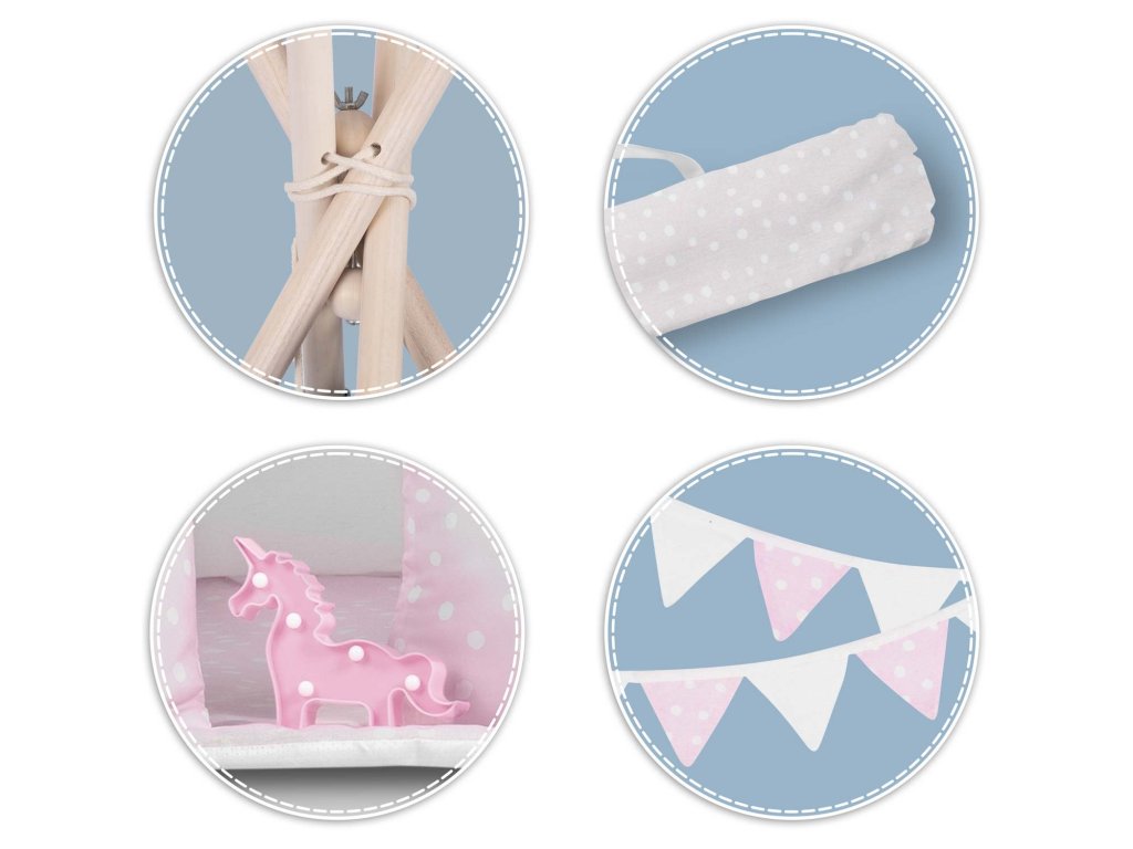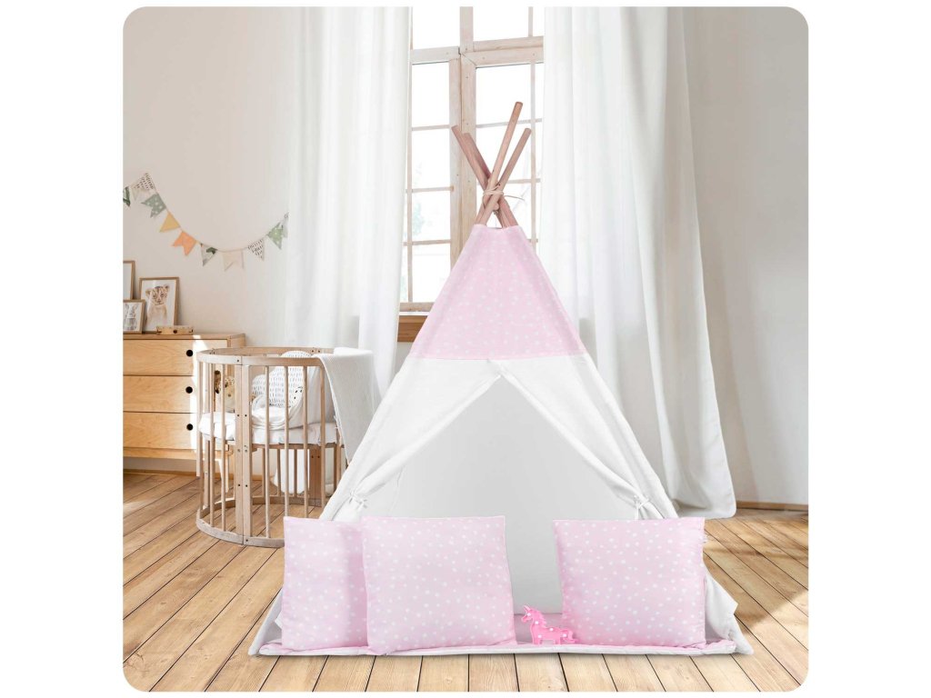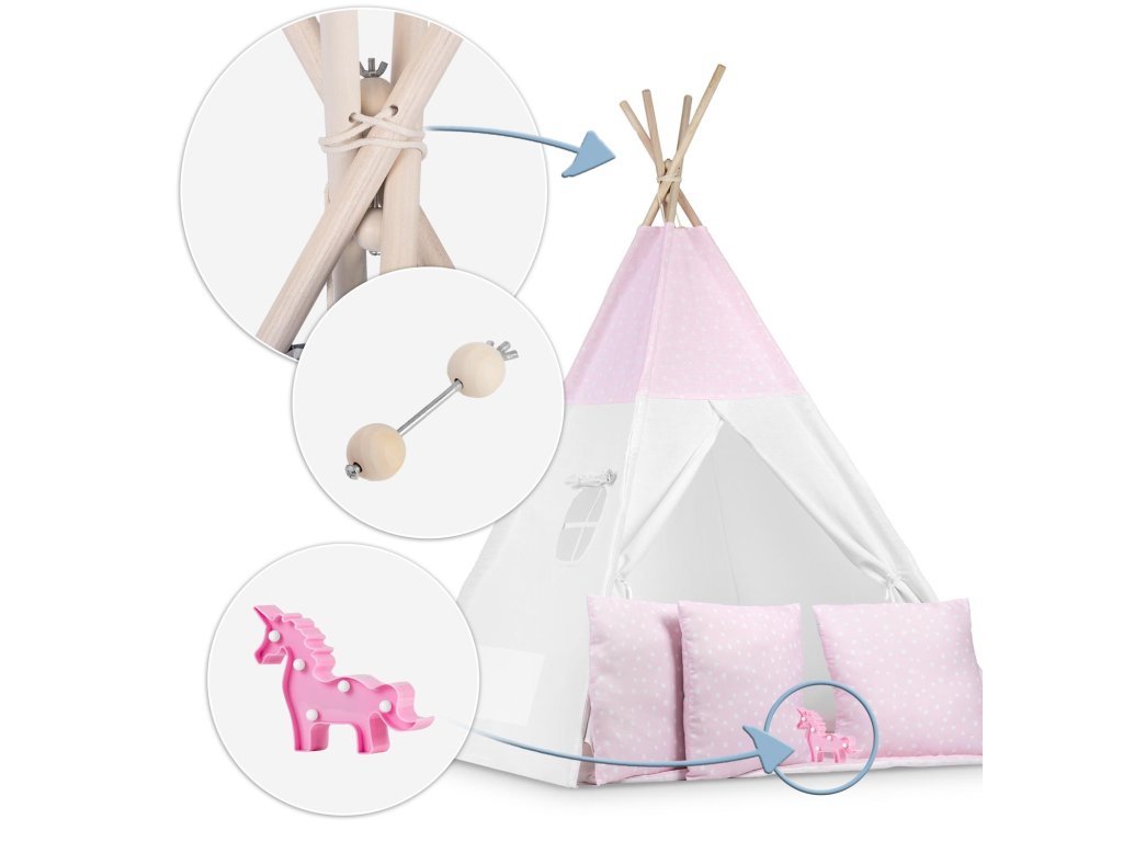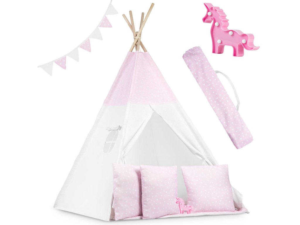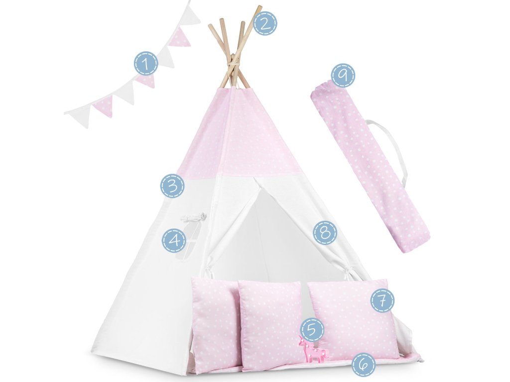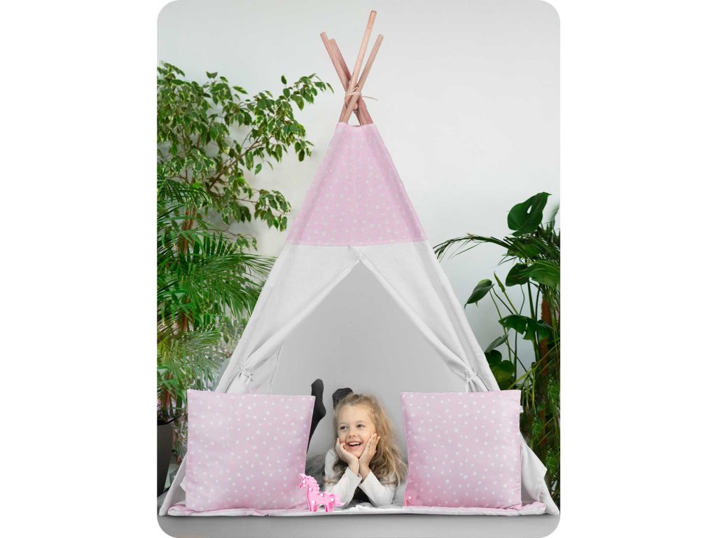 Dječji teepee šator s lampicama - ružičasti s točkicama