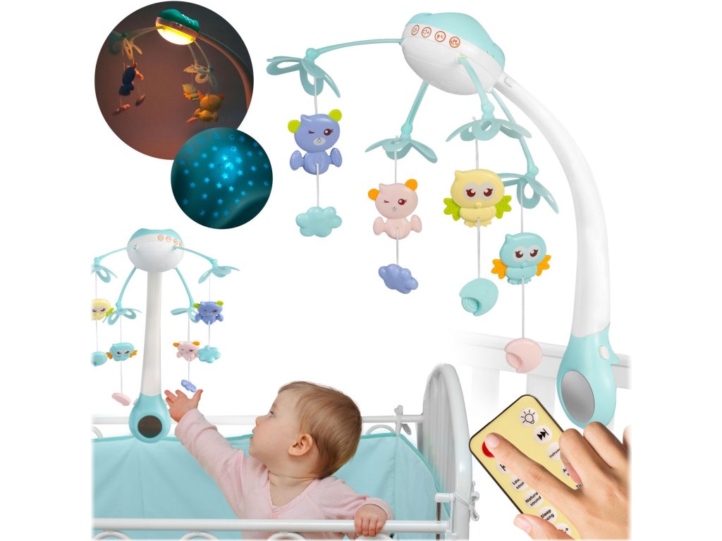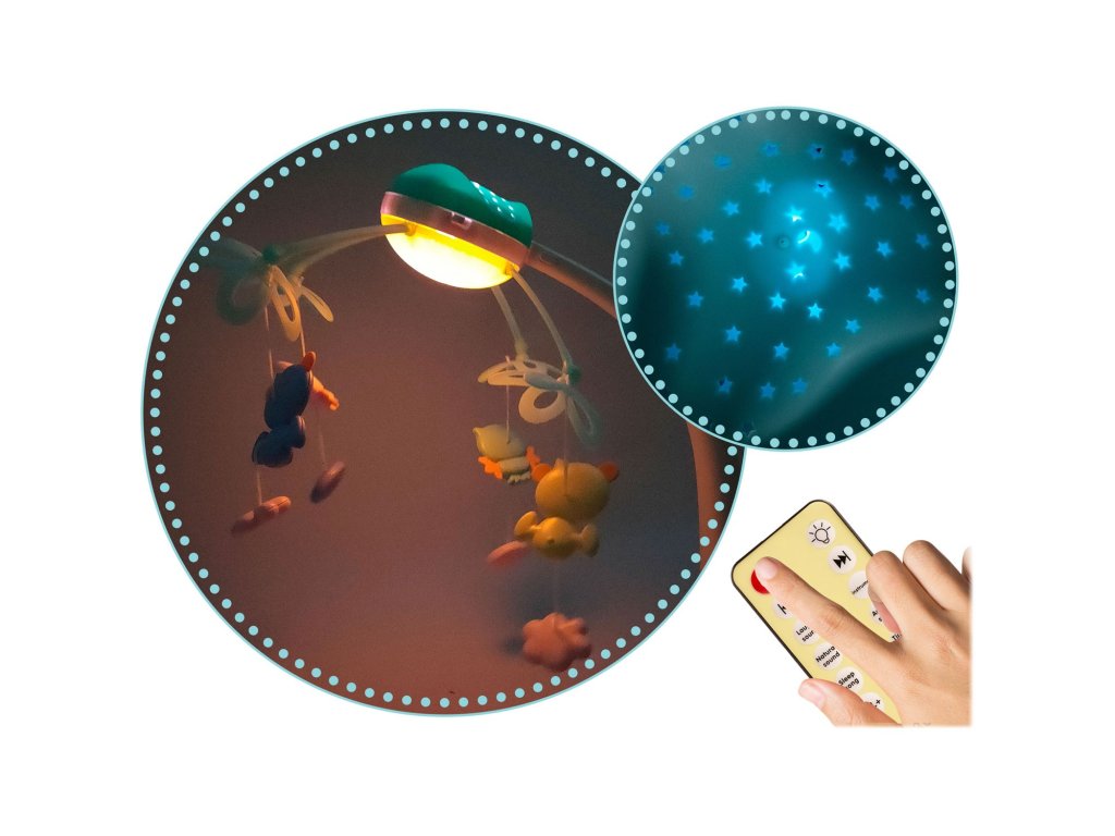 Dječji vrtuljak iznad krevetića s projektorom na daljinsko upravljanje
