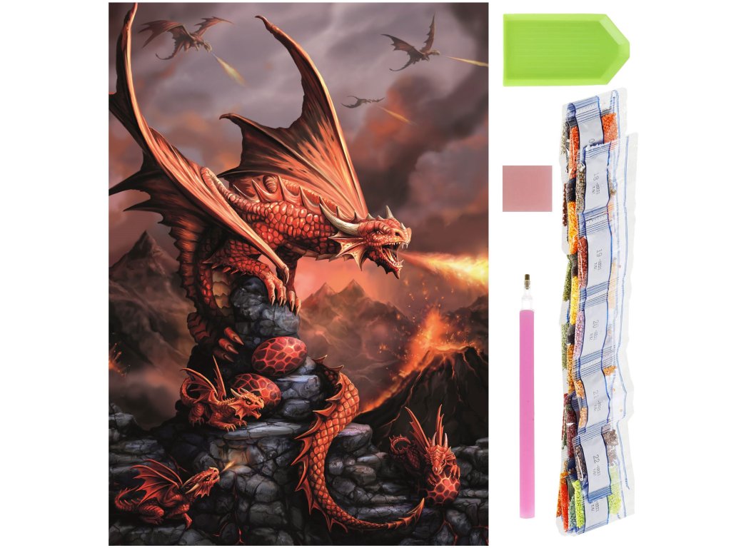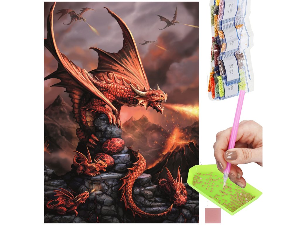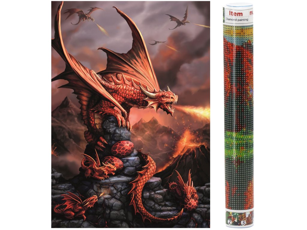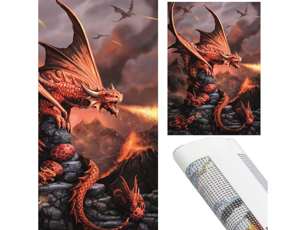 1x čvrsto platno s ispisanom slikom koja prikazuje zmaja i indeksom koji pridružuje slova bojama i boje brojevima koji određuju boju dijamanta