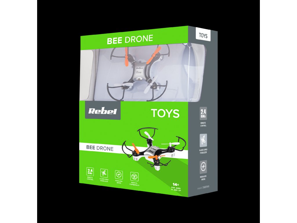 Dron Bee je savršeni alat za male i velike dečke koji bi željeli započeti svoju avanturu s dronom. Upravljanje ovim modelom je vrlo jednostavno zahvaljujući intuitivnom daljinskom upravljaču s dometom do 100 m. Slobodno i precizno pilotiranje drona Bee omogućava 6-osni žiroskop i funkcija automatskog trimanja. Uređaj ima dva načina navigacije i dodatnu opciju izbora tri brzine.