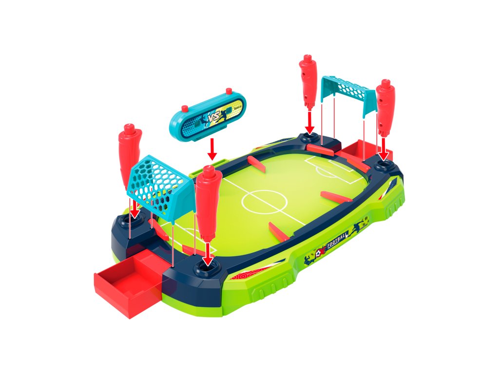 Pravila u Goal Socceru su vrlo jednostavna. Vaš zadatak je zabiti golove u protivnička vrata. U setu ćete pronaći loptice koje su montirane na dršcima i kojima upravljate pritiskom na gumbe. Zahvaljujući tome, svaka igra je ne samo uzbudljivi dvoboj, već i trening spretnosti i refleksa.Ručni brojač golova Jednostavna montaža Lagan i prenosiv Materijal: plastika Težina: 480 g Dimenzije: 38 x 24 x 11,5 cm Prikladno za osobe iznad 3 godine 2-4 igrača