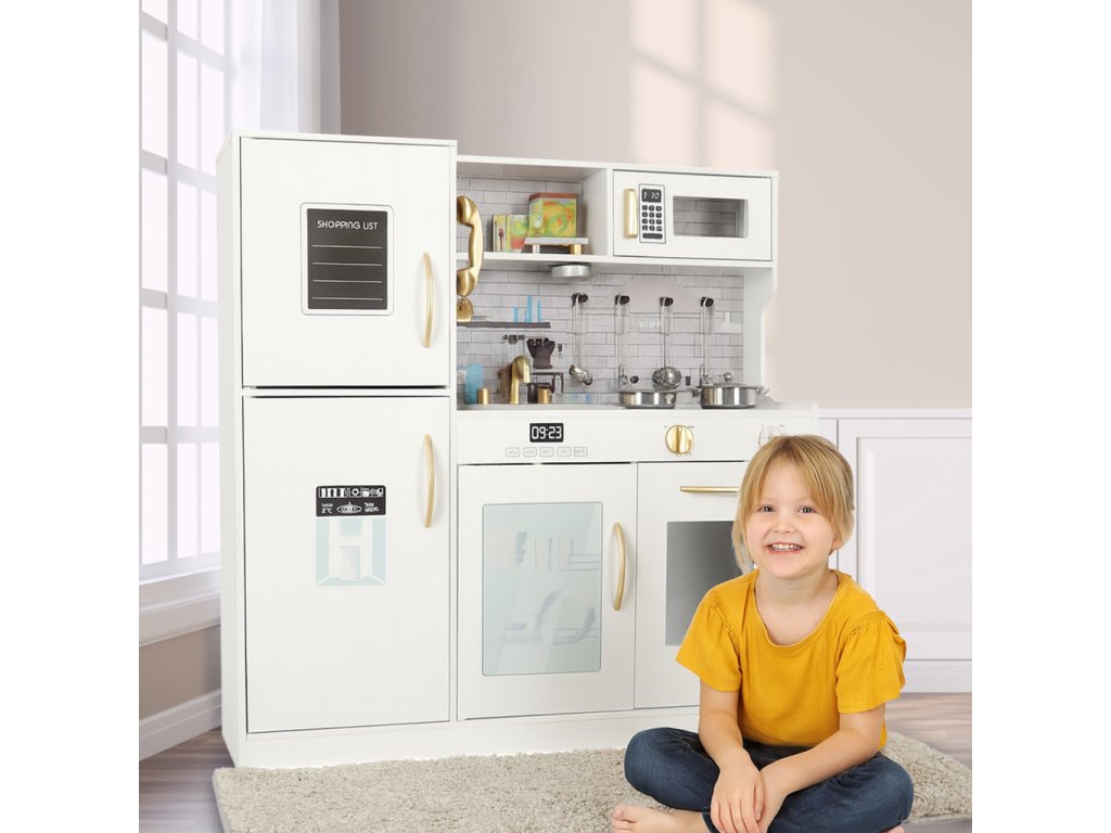 Kuhinja je izrađena od masivnog i glatko brušenog drva, tako da možete biti sigurni da će izdržati mnoga kuhanja koja pripremi vaše dijete. A izdržljivi će biti i metalni dodaci.