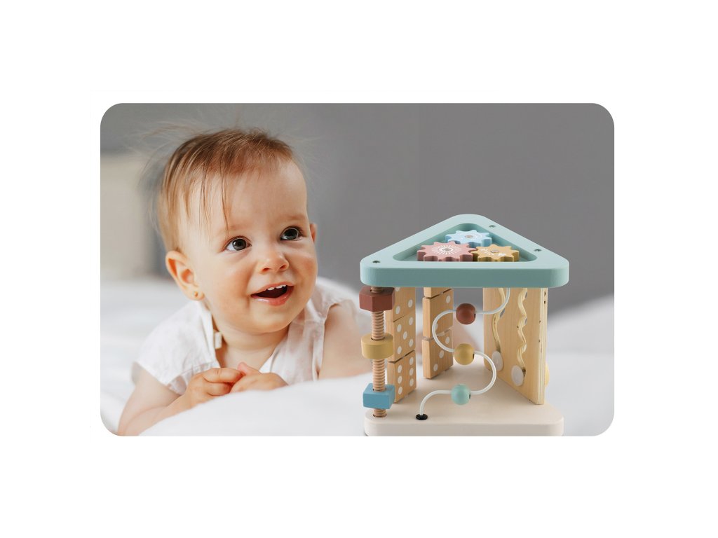 Razni rotirajući elementi i staze omogućuju djetetu pomicanje oblika. Time se vježbaju manualne sposobnosti, koncentracija i planiranje pokreta.
