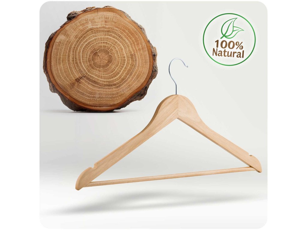 - Sigurno za odjeću: drvo je nježno prema tkaninama, ne ostavlja tragove niti oštećuje odjeću.