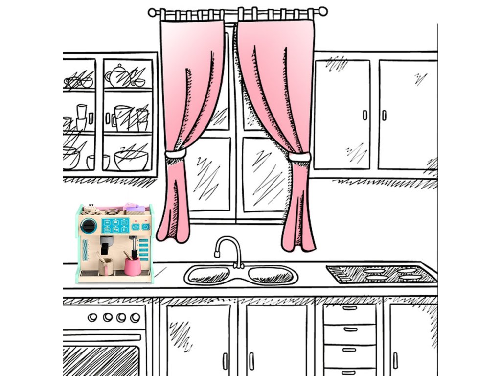 Slastičarna/kavana sadrži brojnu dodatnu opremu: čokoladni keksi 2 kom, štapići cimeta 2 kom, krafne 2 kom, cakepiece 2 kom, boca za kavu 1 kom, štapići za miješanje 2 kom, šalice 2 kom (s ručkom).+ bez ručke).