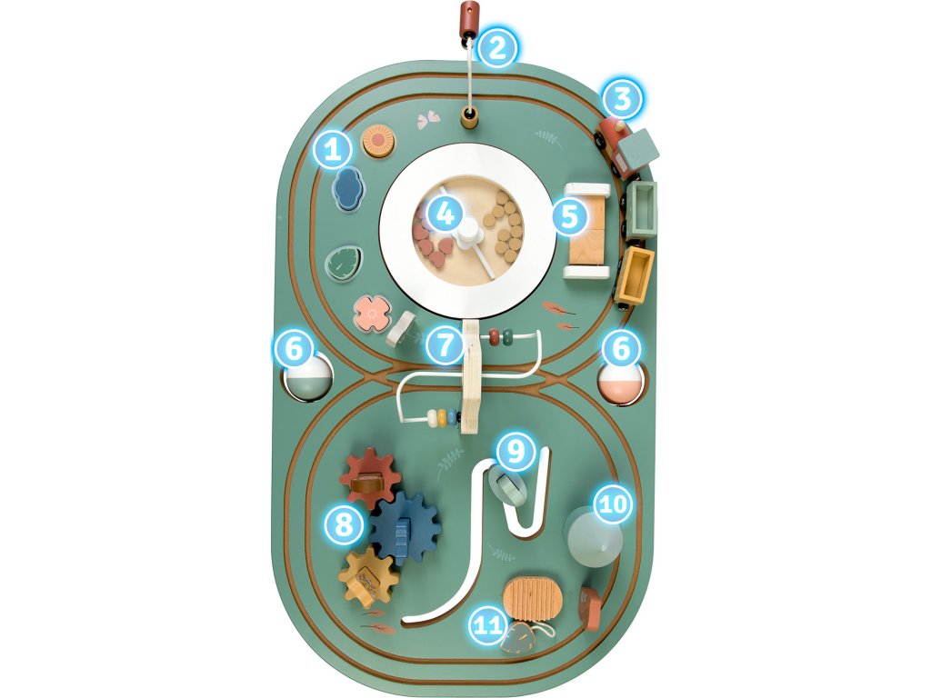 - Drveni pomičnik s pomičnim putem — trenira vještinu i planiranje pokreta.