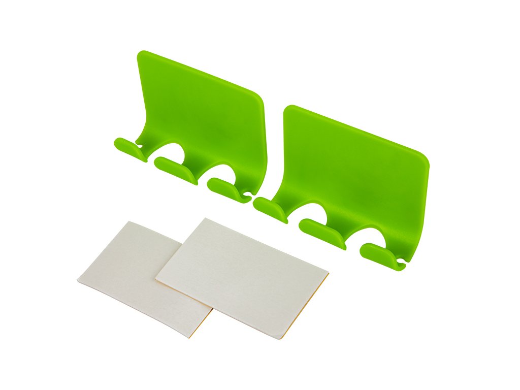 Organizator za kabele u obliku držača za punjač u zelenoj boji. Proizvod omogućuje jednostavno kombiniranje i organiziranje nekoliko kabela i vlakana u jedan svežanj. Izrađen od fleksibilne plastike otporne na oštećenja.