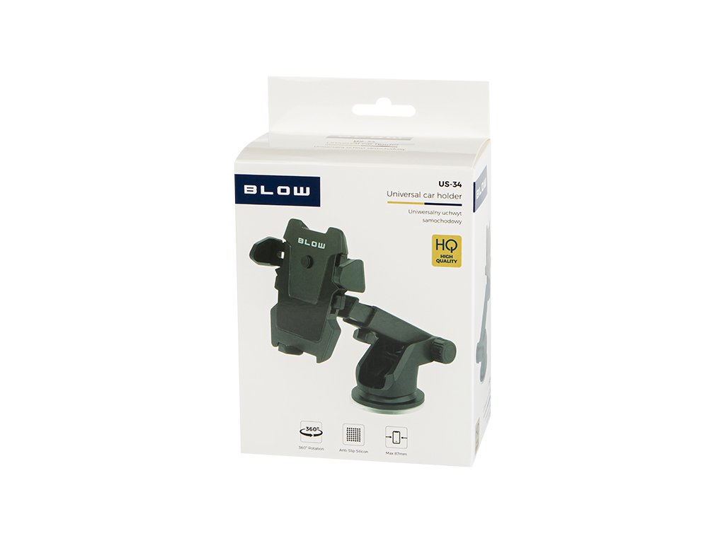 - Podesivi držač mobitela za auto. Zahvaljujući priloženoj usisnoj čašici, proizvod se može postaviti na vjetrobransko staklo i na nadzornu ploču.