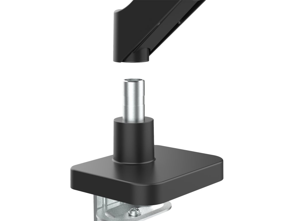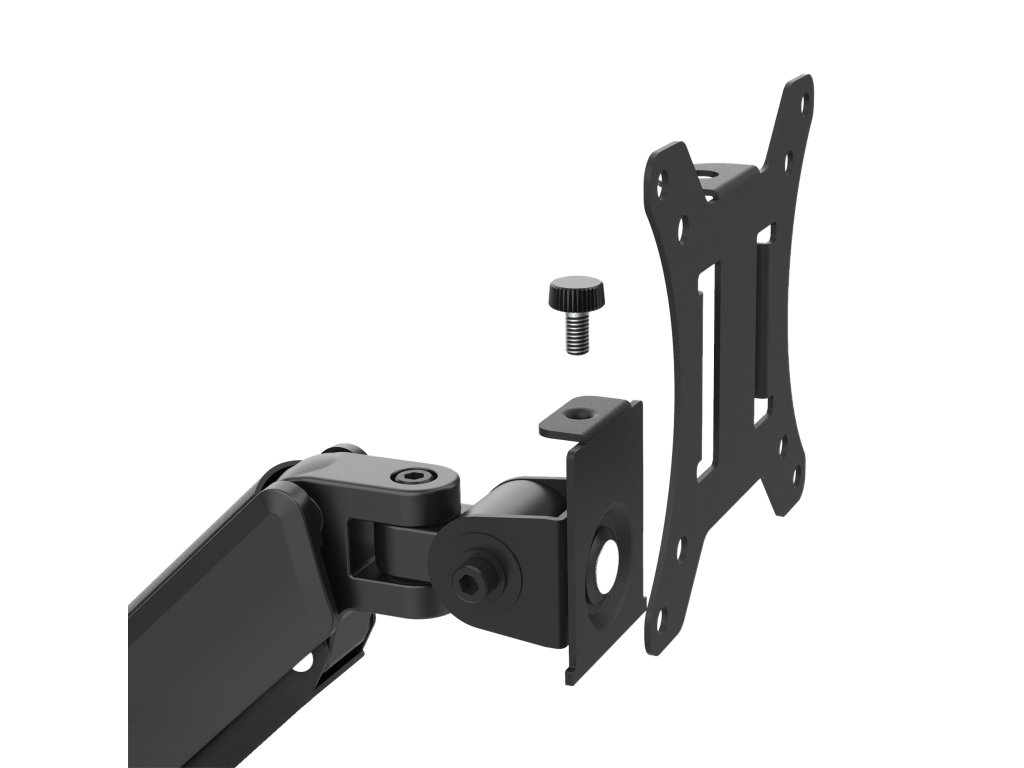 Ruka držača okreće se za 360° i nudi maksimalni doseg čak 451 mm, što daje veliku slobodu postavljanja ekrana. Montaža na rub ili kroz otvor na radnoj ploči omogućuje oslobađanje dragocjenog radnog prostora, a odvojiva VESA ploča olakšava brzu montažu monitora. Idealno rješenje za ured i dom.