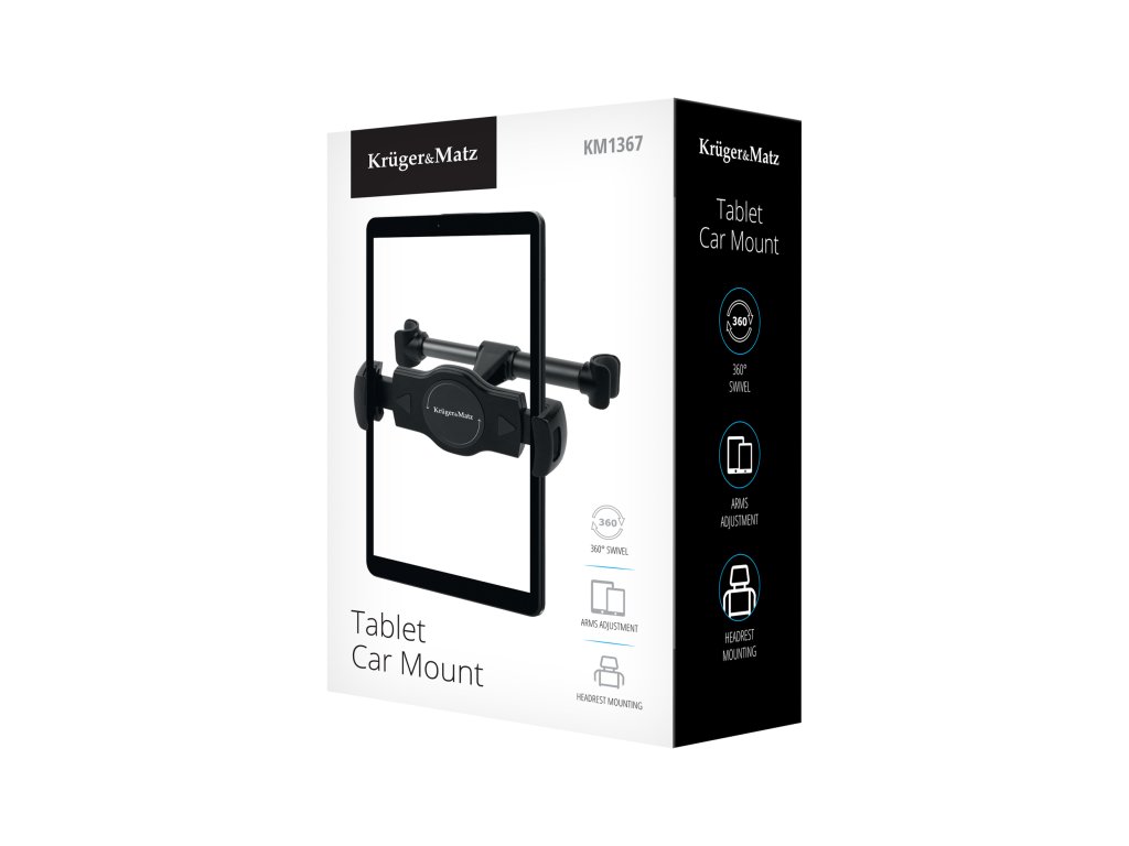 Držač tableta za naslon za glavu automobila Kruger&Matz jednostavno se montira i omogućuje jednostavnu instalaciju bez potrebe za alatima. Važno je da ima podesivi kut nagiba i 360° rotaciju, što vam omogućuje postavljanje tableta u udoban položaj za gledanje.