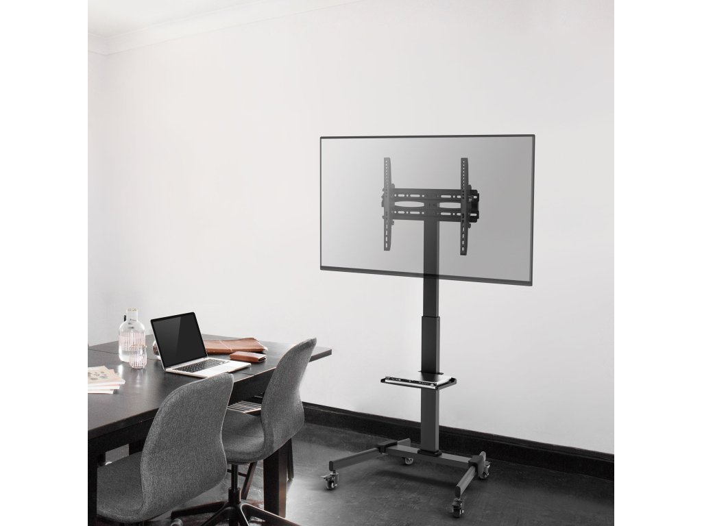 Držač je opremljen policom s maksimalnim nosivost 5 kg, koju je moguće podesiti na odgovarajuću visinu. Idealno za audio-video uređaje, dekodere ili igraće konzole.