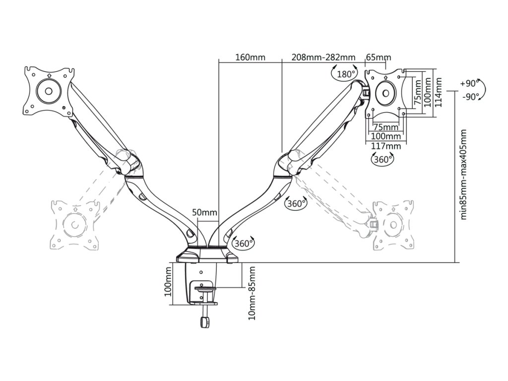 Przeznaczony do monitorów 13-27" max. obciążeni 6kg Vesa: 75x75, 100x100 obrót - 360 stopniPrzeznaczony do monitorów 13-27"