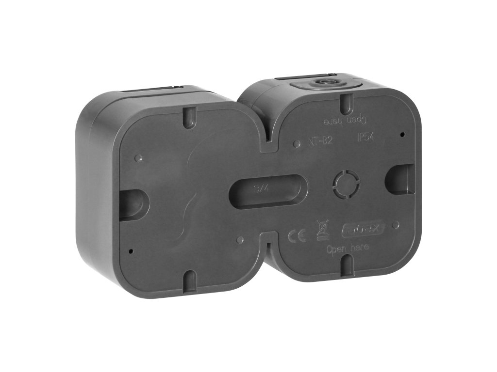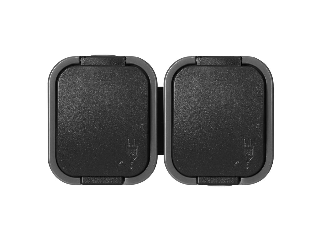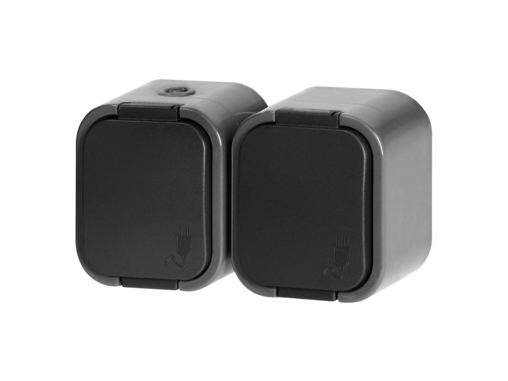 Dvojna površinska utičnica 2x2P+E, otpornost na prskanje s poklopcem B2, IP54, siva/crna