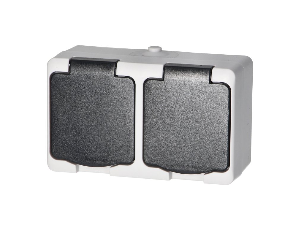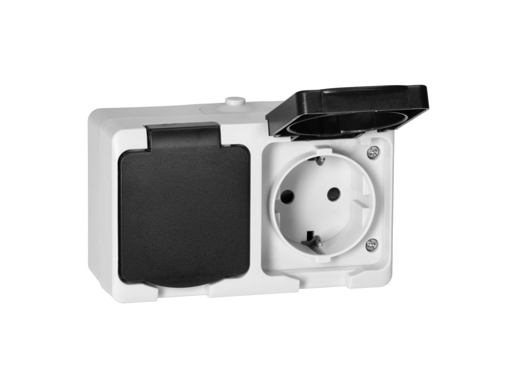 Dvojzásuvka AQUATIC MINI IP54 2x2P+E (Schuko), bielo/čierna
