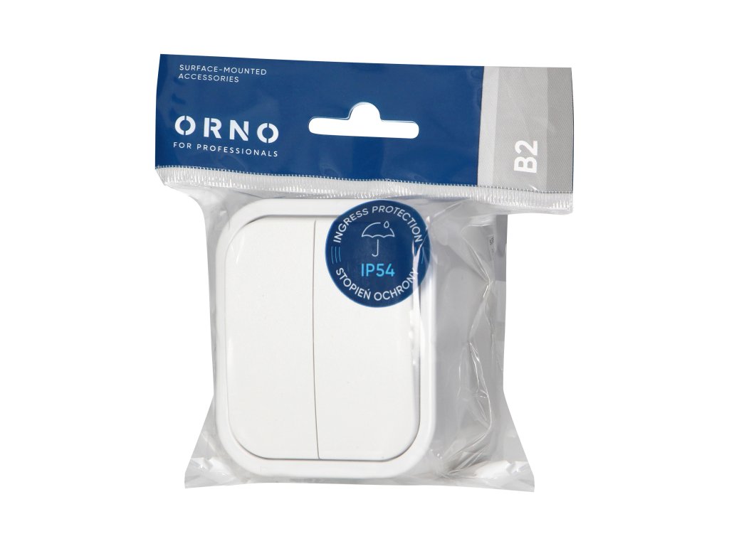 Serija utičnica i prekidača B2, ocjena IP54, otporna na prašinu i vlagu. Serija se odlikuje bezvremenskim oblikom i robusnim kućištem. Idealni za ugradnju u industrijske objekte i kućanstva. Prekidači su opremljeni brzim konektorima, dok su utičnice opremljene tradicionalnim vijčanim spojevima.Dvostruki prekidač je prilagođen za površinsku montažu. Proizvod se koristi za kontrolu rasvjete, na primjer sastavljene od lustera i tradicionalnih ili modernih LED žarulja. Omogućuje uključivanje i isključivanje rasvjete, podijeljene u dvije ili više zona. Bit će pogodan svuda gdje je potrebna zaštita od prašine i prskanja vodom (IP54).