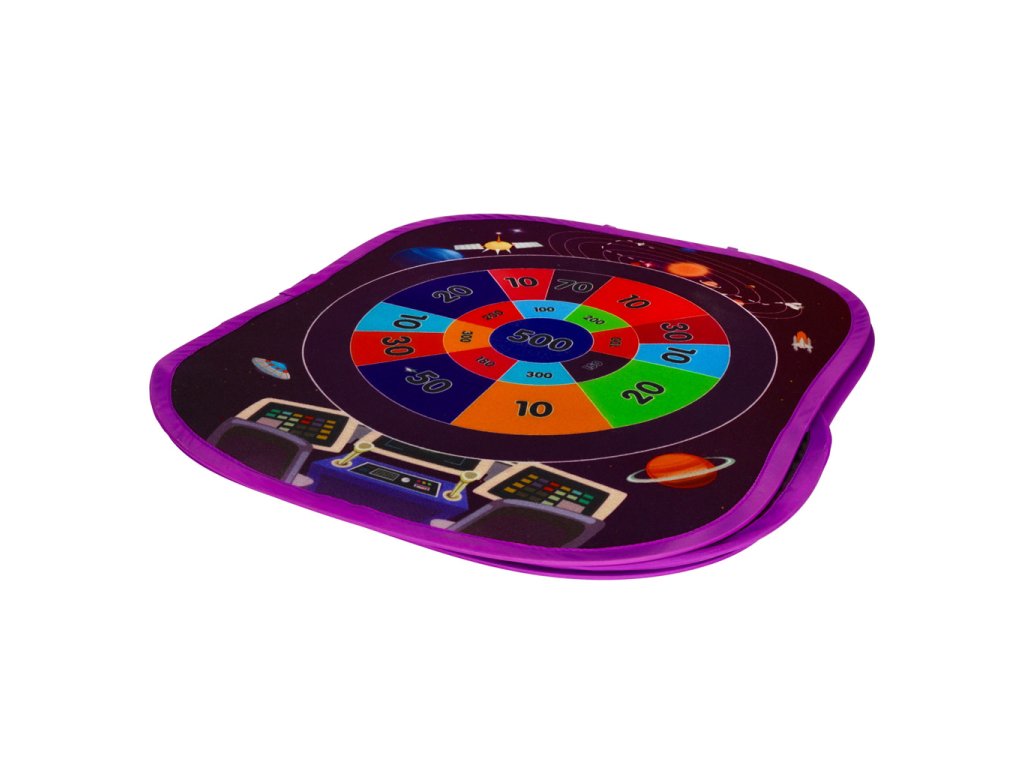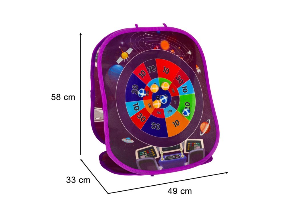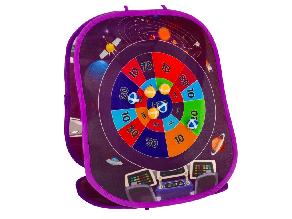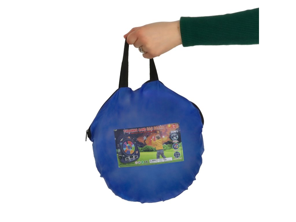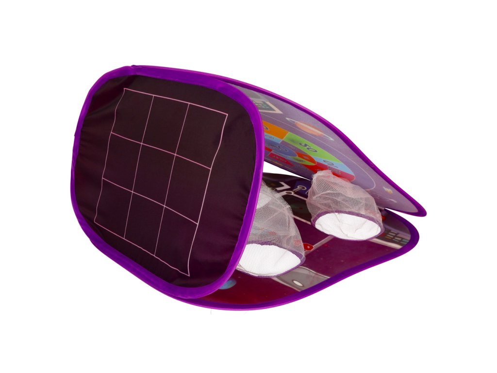 Dvostrani, samostojeći cilj, pričvršćen plastičnim klinovima, omogućuje organiziranje natjecanja u bacanju bilo gdje, bilo kod kuće ili u dvorištu! Na jednoj od njegovih strana nalazi se kružni cilj s bodovanjem, na koji se lako pričvršćuju priložene loptice s čičkom. Na drugoj strani nalaze se 4 otvora u koje se može pogoditi vrećicom.