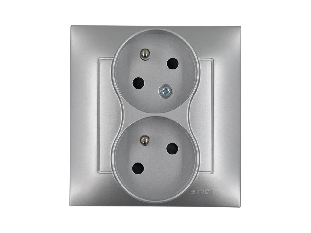 Utičnica 250 V Simon 54 dvostruka kosa s roletama srebrnaSpecifikacija: