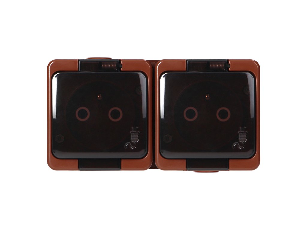 Dvostruka utičnica za površinsku montažu 2x2P+E, s poklopcem, otporna na prskajuću vodu, IP44, SMART, smeđaAdditional parameters