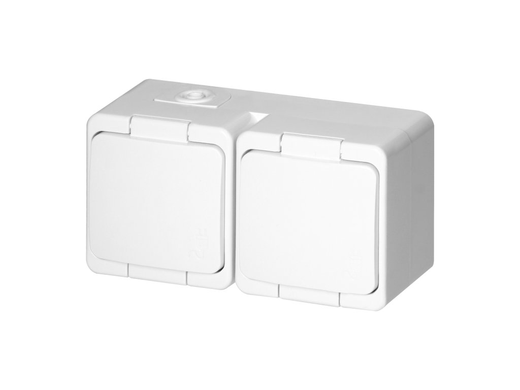 Dvostruka površinska utičnica 2x2P+E, s pokrovom otporna na prskanje vode, IP44, SMART, bijela