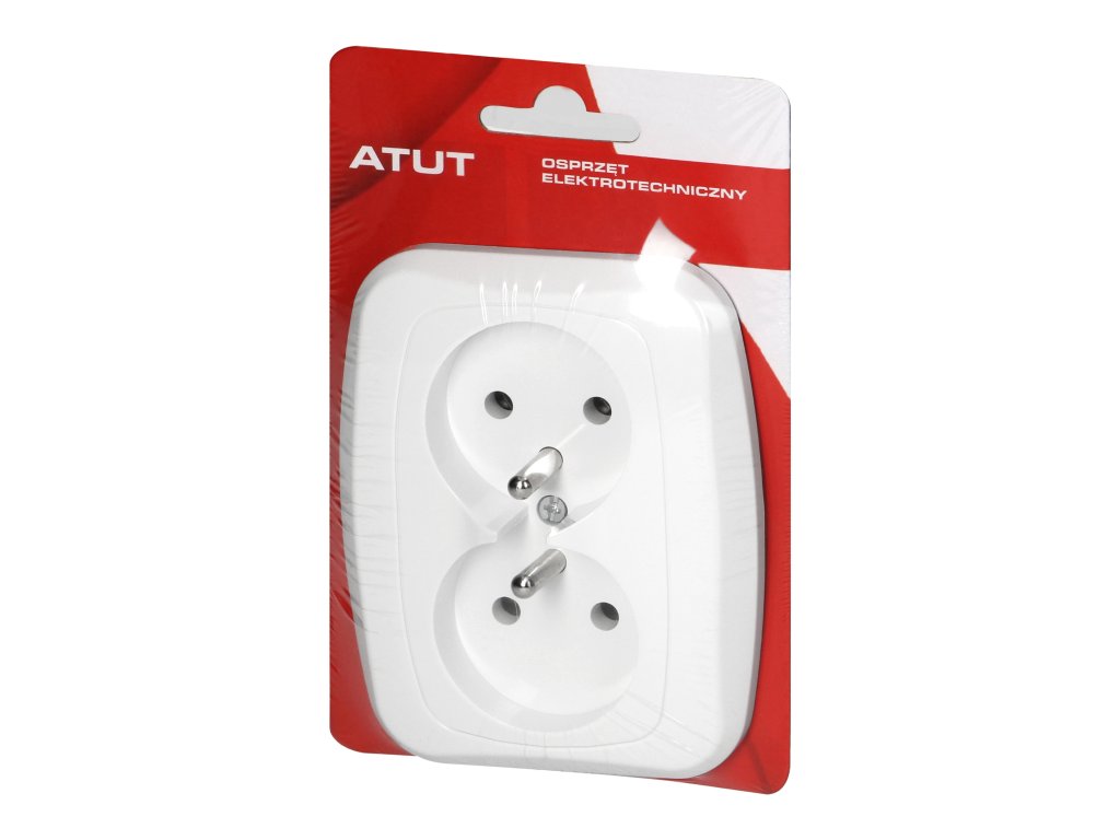 Dvostruka utičnica pod žbukom 2x2P+E, 16A, 250V, ATUT, bijelaAdditional parameters