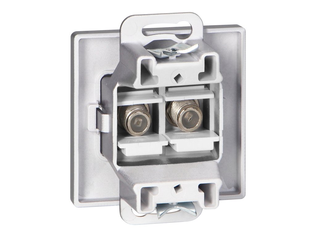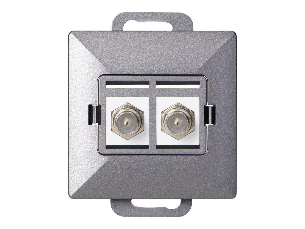 Modularna serija sa simetričnim sustavom ploče okvira (za 1-, 2-, 3-, 4-, 5-modula) omogućuje instalaciju proizvoda u horizontalnom i vertikalnom položaju. Moderan sustav brzog pričvršćivanja (kabeli se spajaju izravnim guranjem u tijelo) jamči sigurnu i pouzdanu instalaciju i uklanjanje kabela. Utičnice su opremljene tradicionalnim vijčanim spojevima. Unutarnja konstrukcija stezaljki jamči sigurno povezivanje kabela od 0,75 mm? do 2,5 mm?. Jaka i robusna montažna ploča i visokokvalitetni samousisni elementi omogućuju stabilnu i sigurnu instalaciju u kutiju. Posebni opružni elementi olakšavaju montažu okvira u tijelo.Dvostruka antenska TV utičnica, tip F. Omogućuje povezivanje dva kabela s F tip konektorom. Trebala bi se koristiti u unutarnjim prostorima (IP20).