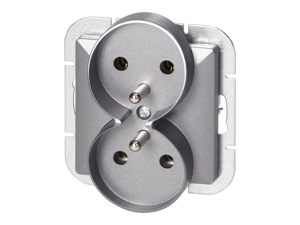 Modularna serija sa simetričnim sustavom okvirne ploče (za 1-, 2-, 3-, 4-, 5-modula) omogućava montažu proizvoda u horizontalnom i vertikalnom položaju. Moderni mehanizam za brzu vezu (kablovi se spajaju izravnim umetkom u tijelo) pruža sigurno i pouzdano povezivanje i uklanjanje kablova. Utičnice su opremljene tradicionalnim vijčanim spojevima. Unutarnji dizajn stezaljki jamči sigurno povezivanje kablova od 0,75 mm do 2,5 mm . Jaka i robusna mreža montažne ploče i visokokvalitetni samootporni elementi omogućuju stabilnu i sigurnu instalaciju u kutiji. Posebni opružni elementi olakšavaju postavljanje okvira u tijelo.Dvostruka utičnica francuskog tipa, 2x2P+E. Namijenjeno za ugradbenu montažu u sustavu okvirnih ploča. Treba se koristiti u zatvorenom prostoru (IP20).