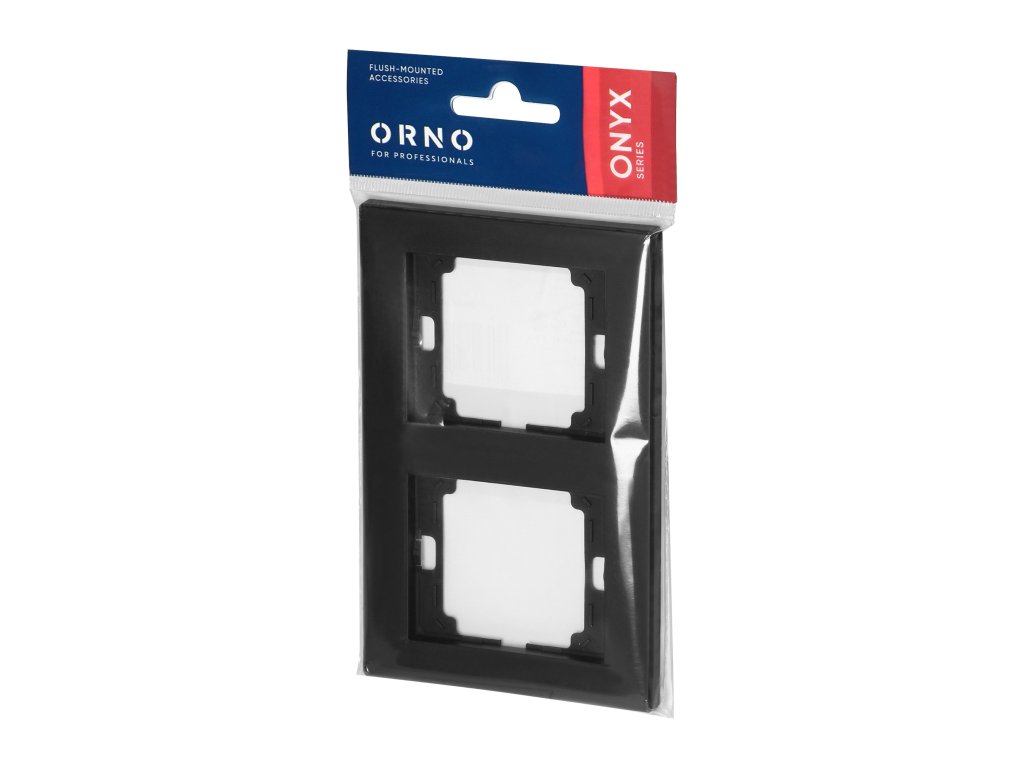 Modularna serija sa sustavom okvirnih ploča. Serija modernih prekidača i utičnica koji skladno odgovaraju originalnim dizajnerskim interijerima. Moderni mehanizam brzog priključivanja prekidača (žice se priključuju umetn'ivanjem izravno u tijelo) osigurava sigurnu i pouzdanu instalaciju i uklanjanje žica. Utičnice su opremljene tradicionalnim vijčanim spojevima. Unutarnja konstrukcija stezaljki jamči sigurno priključivanje žica od 0,75 mm? do 2,5 mm?. Jaka i robusna montažna ploča i posebni montažni elementi omogućuju stabilnu i sigurnu instalaciju u kutiju.Vertikalni dvostruki okvir za seriju ONYX. Potrebno ga je koristiti u interijeru (IP20).