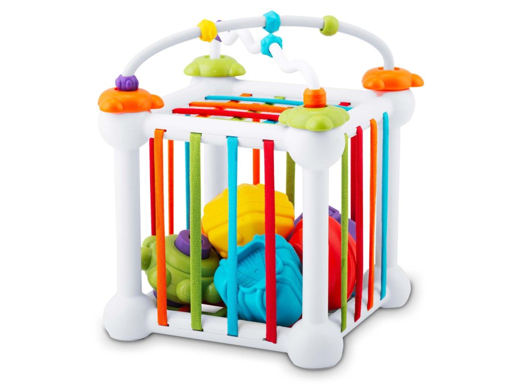 Teksture i zvukovi - zveckanje potiču dječje osjete. Istraživanje ove igračke osigurat će Vašem Malcu vrijeme ispunjeno užitkom i razvojem. Izvrsna prva sortirka za maleno dijete.