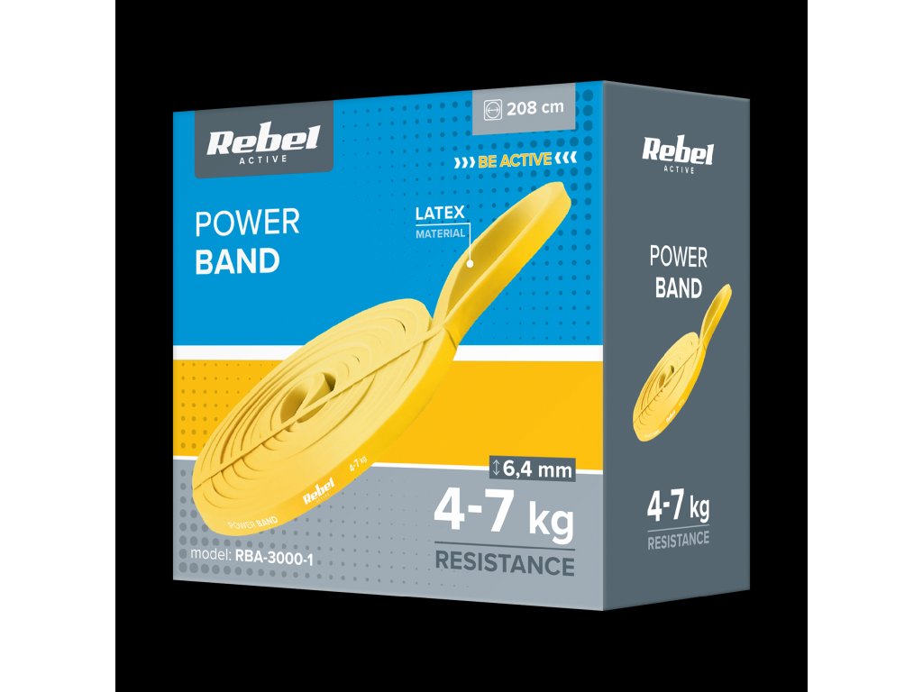 Elastična traka za vježbanje - Power Band PL-1, žuta 4-7 kg REBEL ACTIVE