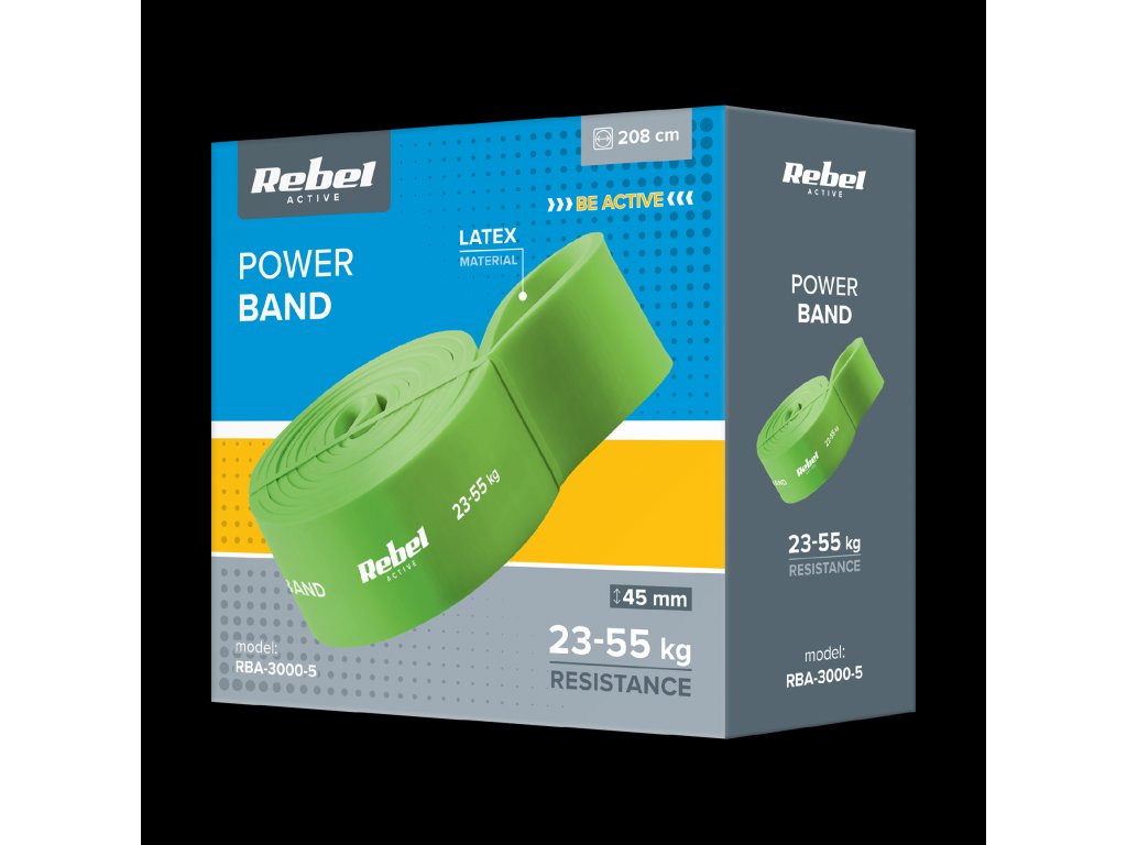 Elastična traka za vježbanje - Power Band PL-5, zelena 23-55 kg REBEL ACTIVE