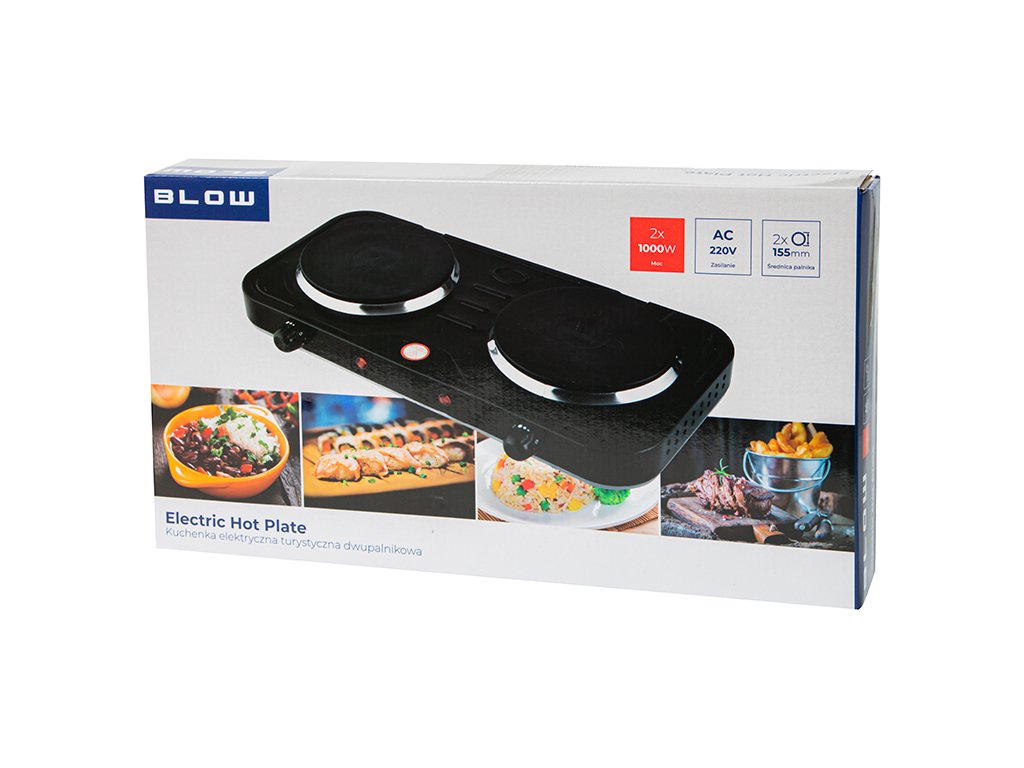 Kuchenka elektryczna dwupalnikowa Blow to przenośne urządzenie idealne do domków letniskowych, biur czy akademików. Jest łatwa w obsłudze, bezpieczna i wygodna do przenoszenia, oferując prostą regulację temperatury i szybkie gotowanie.