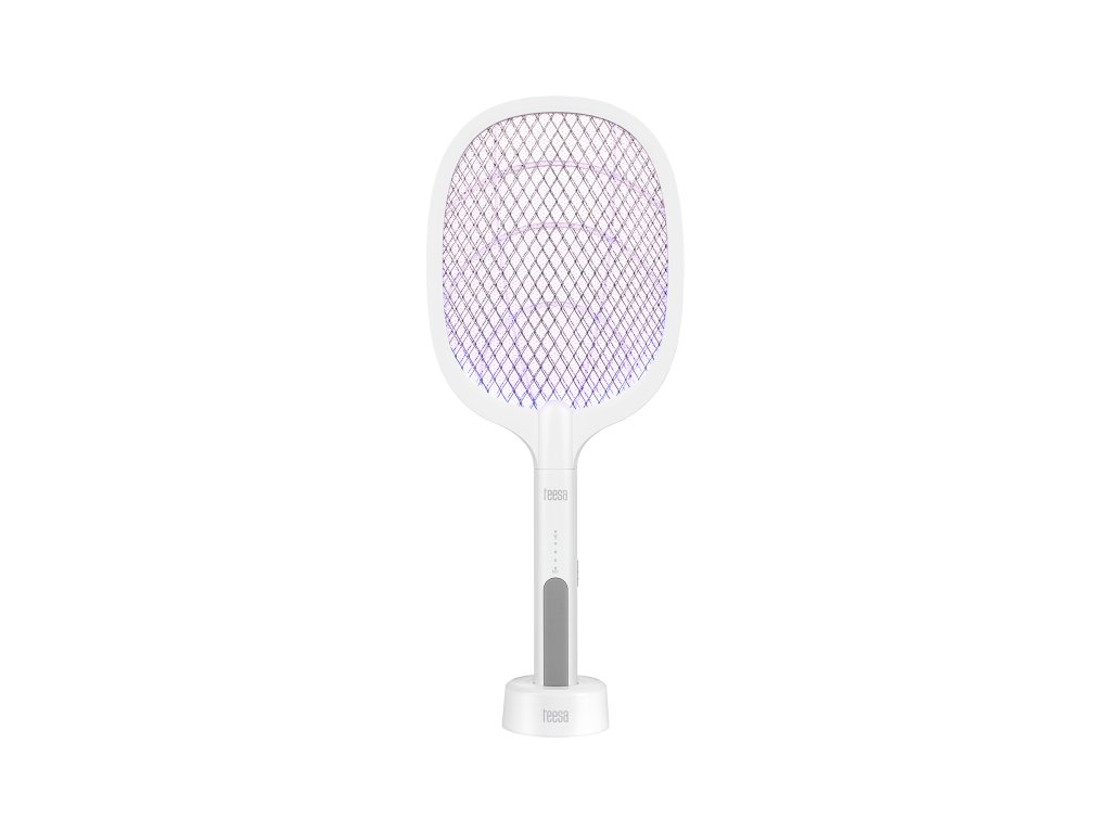 W zestawie znalazła się także praktyczna podstawka, która jest zarazem stacją dokującą. Pozwala ona zamienić łapkę elektryczną w stojącą lampkę owadobójczą UV.
