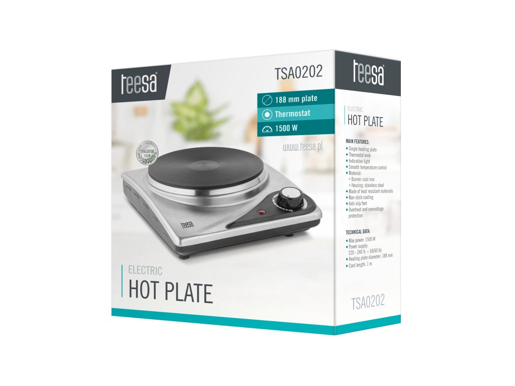 O visokoj kvaliteti prijenosnog turističkog kuhala Teesa svjedoče korišteni materijali otporni na toplinu. TSA0202 je izrađen od nehrđajućeg čelika s neprianjajućom površinom, što značajno olakšava čišćenje. Stabilan i siguran rad jamče protuklizne nogice i funkcija zaštite od pregrijavanja i prenapona.