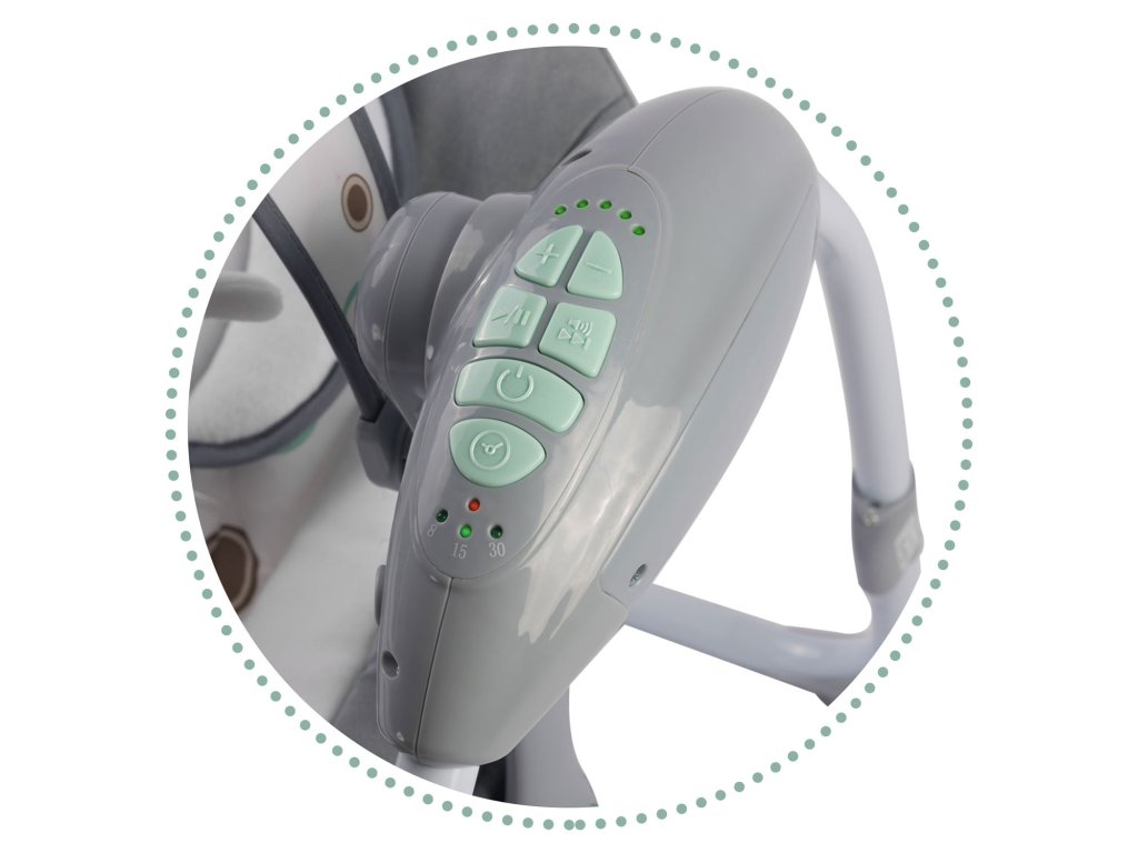 Njegovo upravljanje je dječja igra! Brzo podesite način ljuljanja, odaberite odgovarajuću melodiju, promijenite glasnoću glazbe ili postavite timer!