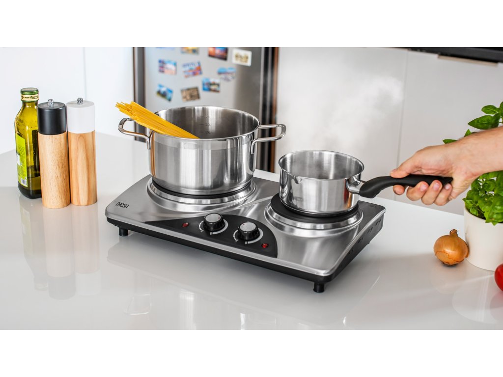 Provodite li dugu obiteljsku avanturu u kampu Ili vam je potreban uređaj za vikendicu na zemljištu koji će vam omogućiti jednostavnu pripremu obroka za obitelj i prijatelje U svakoj od ovih situacija idealan je praktičan i kompaktan prijenosni električni štednjak Teesa TSA0203 s snagom od 2500 W. Zahvaljujući dvama lijevanim grijaćim elementima u kombinaciji s kontrolnim gumbima koji omogućuju podešavanje temperature do 650 °C, priprema večere neće biti problem.