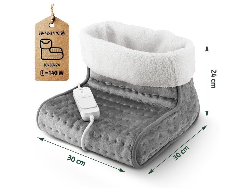 Grijač za noge snage 140 W ima 3 razine postavki, koje omogućuju prilagodbu temperature prema vlastitim potrebama. Debeli materijal osigurava ravnomjerno raspoređivanje topline, učinkovito sprječavajući njezin gubitak, tako da noge ostaju ugodno tople.