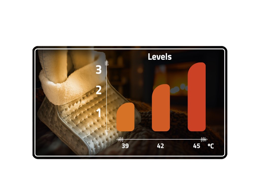 Grijač za noge pruža brzo, kontrolirano grijanje koje možete prilagoditi svojim potrebama zahvaljujući trima razinama postavki. To je idealno rješenje kada trebate brzo zagrijati smrznute noge nakon šetnje ili dana punog aktivnosti.