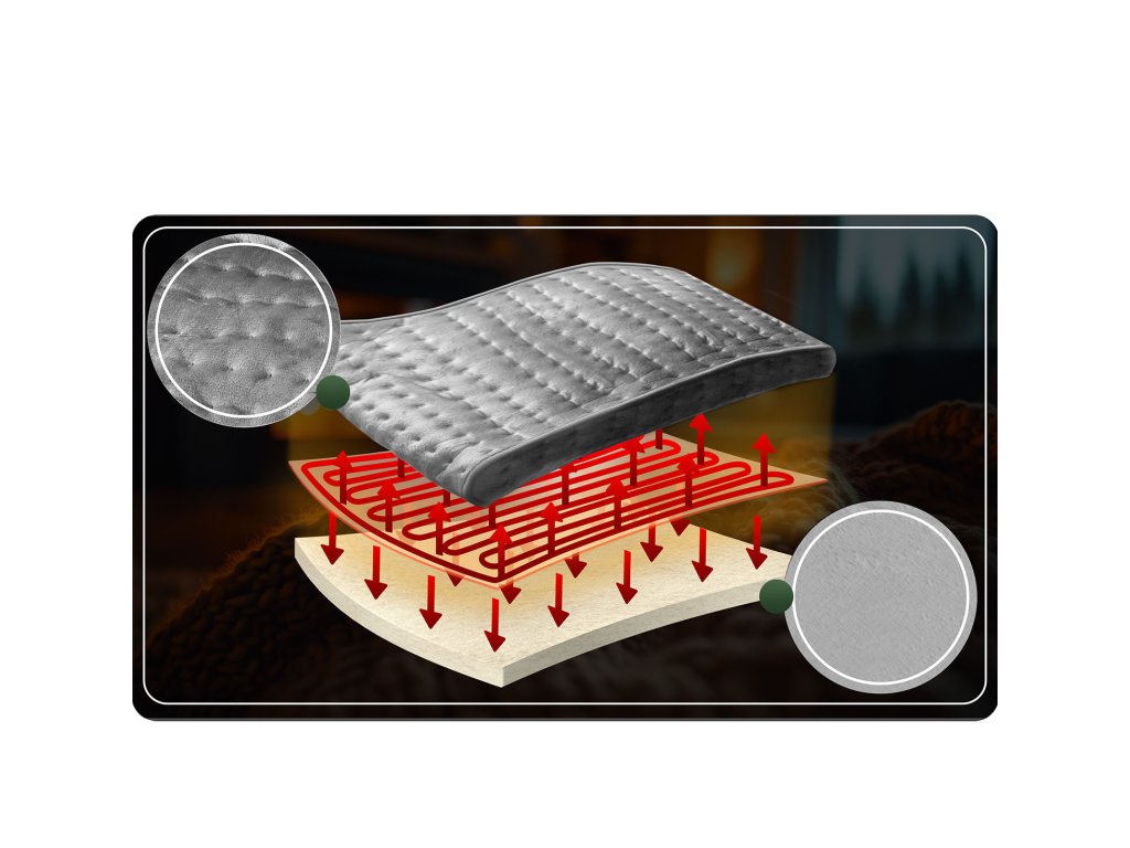 Električna deka ima ugrađene kanale za grijanje, koji generiraju i ravnomjerno raspoređuju toplinu.