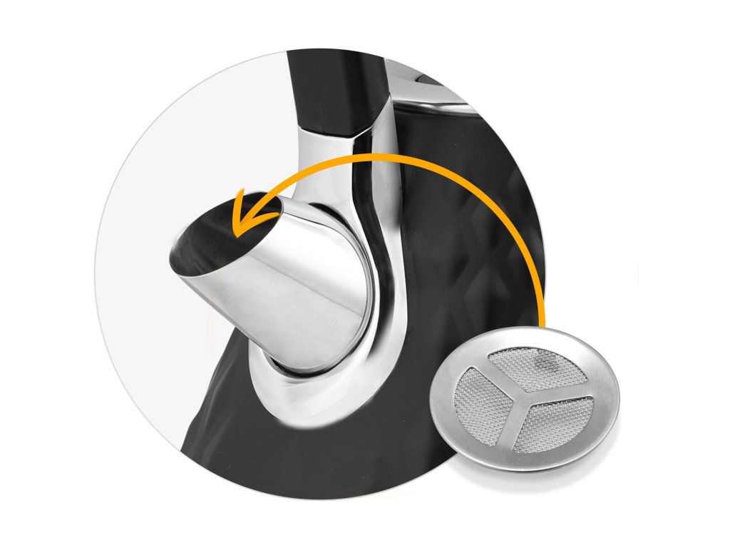 Čajnik ima metalni filter otporan na kamenac, koji se može izvaditi i očistiti ili zamijeniti novim. Zahvaljujući njemu, nikada nećete naći naslage kamenca u čaju.
