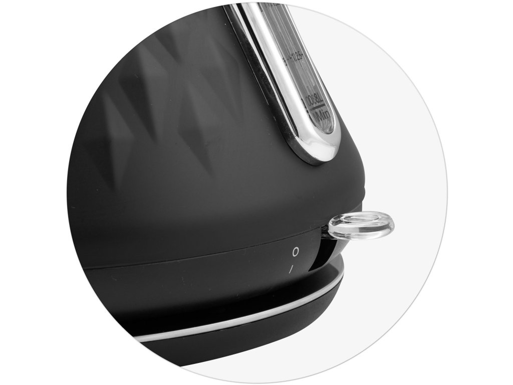 Čajnik ima osvijetljeni prekidač i pokazatelj razine vode od prozirne plastike.