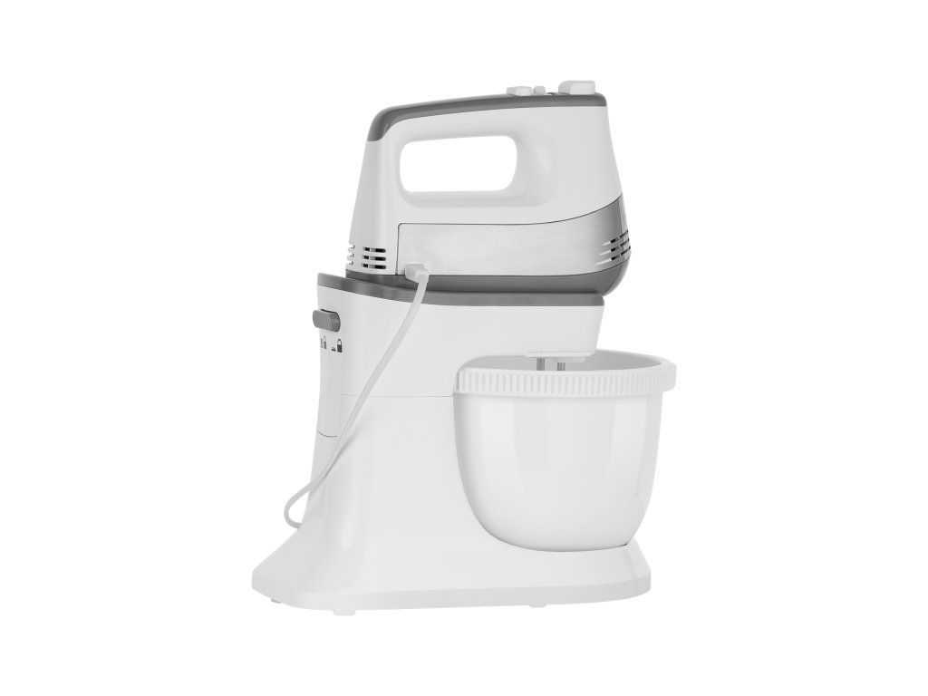 Svaki ljubitelj kulinarskih revolucija treba dobar kućanski aparat koji će mu olakšati isprobavanje novih recepata. Ručni mikser s rotirajućom zdjelom kapaciteta 3,4 litre zasigurno je uređaj koji ne bi smio nedostajati u vašoj kuhinji. S snagom od 500 W olakšat će vam pripremu ukusnog peciva i omogućiti da iznenadite svoje goste!